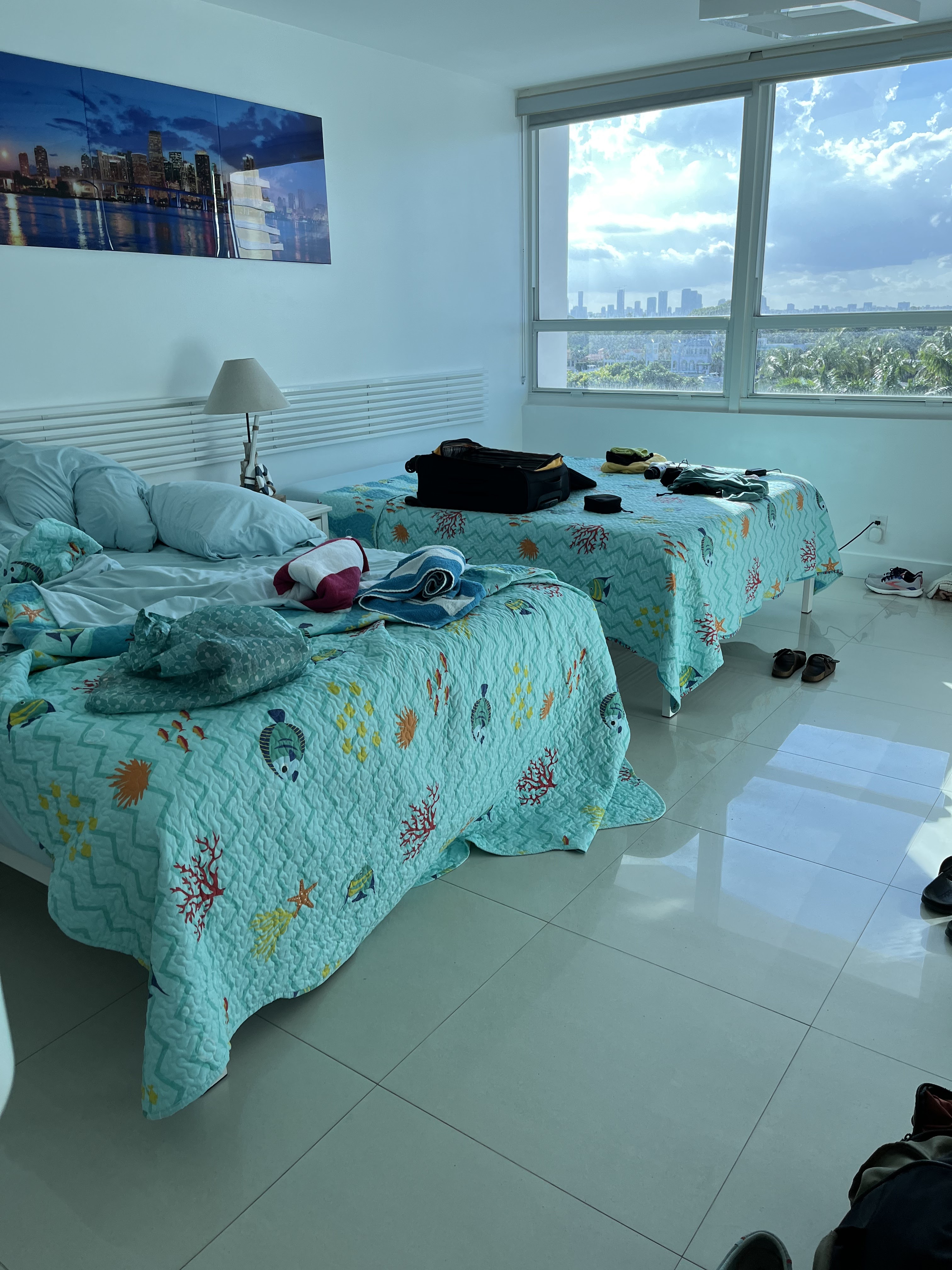 Celebrating our 20th Anniversary! Flew out of Minneapolis last night around 6:30p for a smooth flight to Miami FL, landing around 11p. Travel and car rental went smooth, we were at our place and in bed by 1AM. Very thankful all went well getting here. Excited for this time away with Kyle❤️